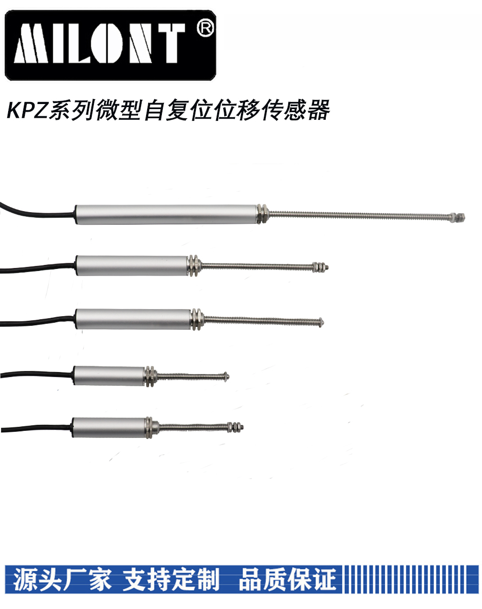 KPZ系列微型自復位式位移傳感器,量程0-100mm可選,輸出0-100%給定輸入電壓(隨位移變化而變化)。傳感器為電位計原理,另外可以外置信號變送模塊,將信號轉換為標準的0-5V,0-10V,4-20m模擬信號或者RS485數(shù)字信號。